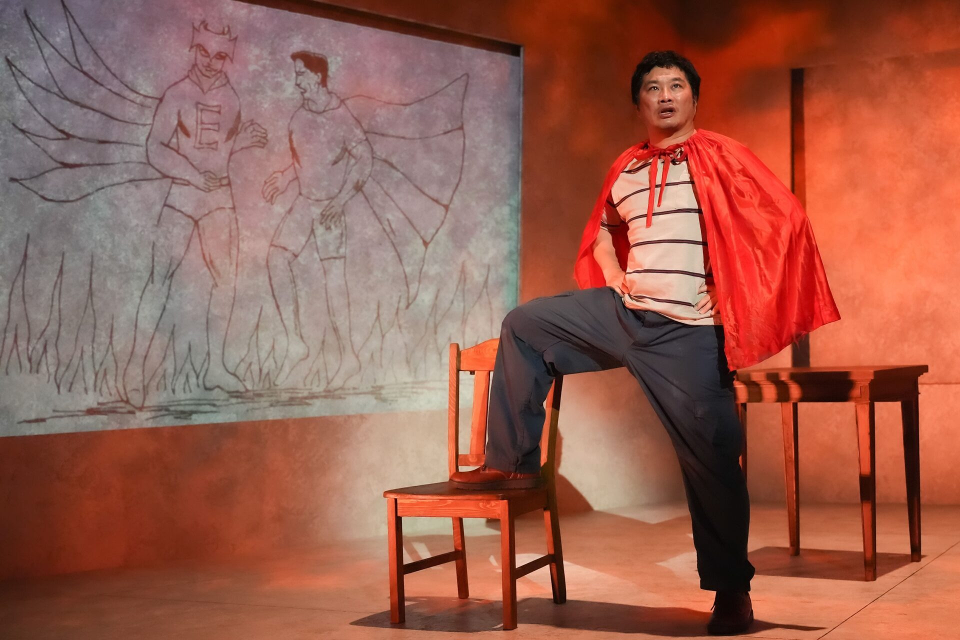 スーパーヒーローに扮する一人の男とその娘の、たった6年間の記憶の物語が、一人芝居で描かれます。