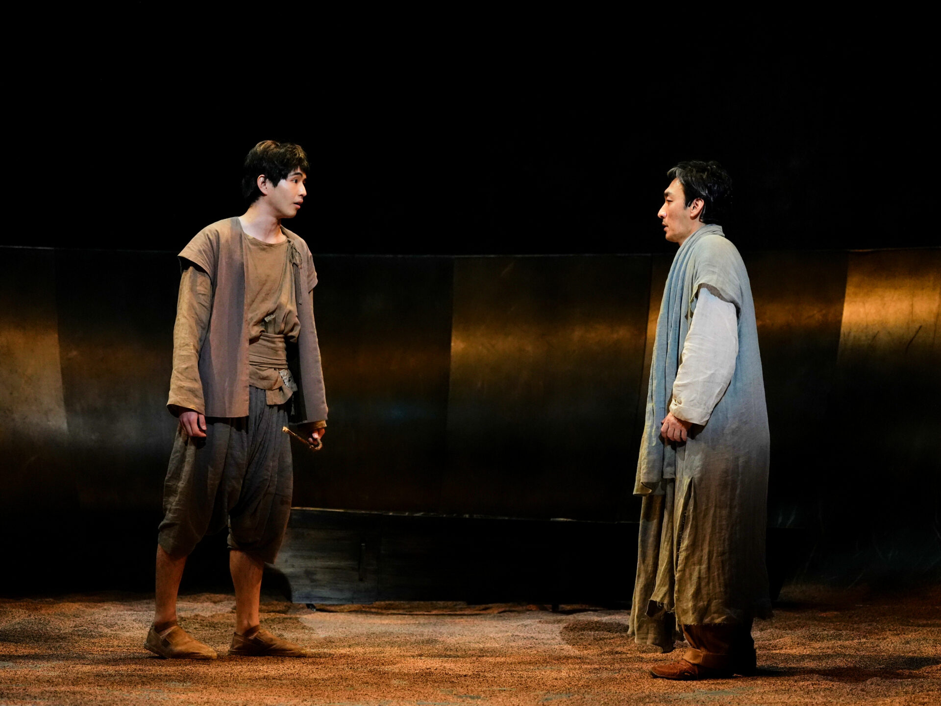 長田育恵(劇作)×白井晃(演出)×三宅純(音楽)、そして草彅剛主演の舞台『シッダールタ』が11月15日(土)に開幕した。原作はヘルマン・ヘッセの傑作小説。叙事詩的/哲学的な力強い言葉、時空を超えて古代インドに誘われるような音楽、美術・照明・音響さまざまな要素が有機的につながる劇空間──。一人の男の魂の遍歴を描いた壮大な物語が鮮やかに立ち上がった、最終舞台稽古のレポートを送る。